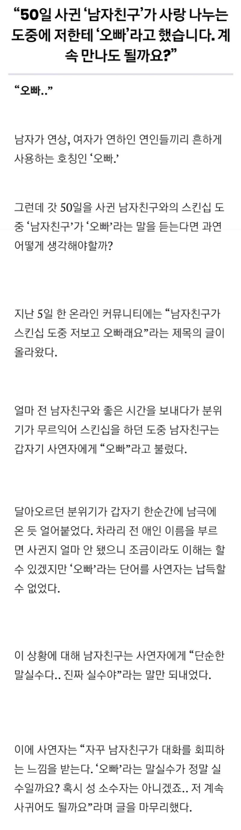 [유머/생활] 남자친구가 관계중에 오빠래요..